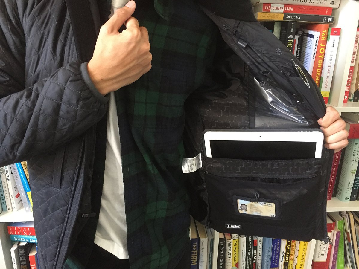 Some of the pockets of the ScotteVest OTG jacket are actually layered inside each other.